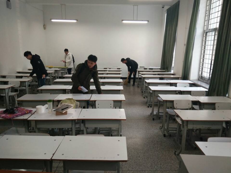 党支部书记首先强调了学习雷锋精神的重要性,他认为雷锋精神的内涵在于奉献,而奉献正是美的真谛,从而引导同学们在感受身边的好人好事的过程中激发奉献的情感,学会关心与帮助周围的人。为更加深入学习雷锋精神,从行动上学习雷锋,一部分党员机电馆教室桌洞里面的垃圾一一清空,男生党员细心的将桌椅摆放整齐,还有一部分将黑板擦拭的一尘不染,看着整洁明亮的教室,党员们虽然身体疲惫,但充分体会到为人民服务的乐趣。