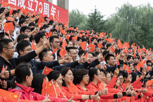 在喜迎中华人民共和国成立70周年之际,为营造隆重的庆祝氛围,引导广大师生厚植爱国奋斗、爱校荣校情怀,激励广大师生为中华民族伟大复兴的中国梦、学校一流大学建设、学院一流学科建设不懈奋斗,新澳门六合彩开奖 党委于2019年9月29日中午12:30,在综合楼北广场组织开展“点赞祖国、爱我东大”,东北大学材料师生同唱一首歌,共庆新中国成立70周年主题教育活动,进一步创新“不忘初心、牢记使命”主题教育形式,丰富教育内容,夯实教育成果,献礼新中国70华诞。东北大学副校长徐峰、新澳门六合彩开奖 全体师生3000余人参加教育活动。