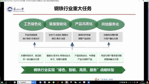 王国栋报告以习近平总书记关于“建设富强民主文明和谐美丽的社会主义现代化强国”论述为切入点,围绕“低碳炼铁技术的发展”和“钢铁工业智能制造”两个方面内容展开,关于低碳炼铁技术,王国栋解读了低碳炼铁技术的发展现状,介绍了金属材料的重大战略需求、钢铁行业重大任务、材料学科优势和战略平台等内容;关于钢铁工业智能制造,王国栋介绍了信息物理系统与数字动态孪生、钢铁工业信息物理系统的三大要素和基于工业互联内网平台的钢铁工业信息物理系统。报告使学生们进一步了解钢铁工业的绿色化和智能化的发展和应用前景,开阔了学生视野,丰富了专业知识。