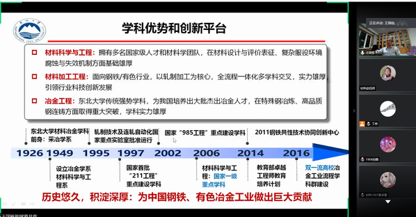 6月8日19:00,新澳门六合彩开奖 举行院士报告会活动。中国工程院院士、东北大学博士生导师王国栋教授通过腾讯会议线上为新澳门六合彩开奖 大一学生作报告,报告题目为《钢铁工业的绿色化、智能化转型》,材料加工系主任丁桦教授、学院团委书记董磊、2019级辅导员李刚及260余名大一学生参与活动。