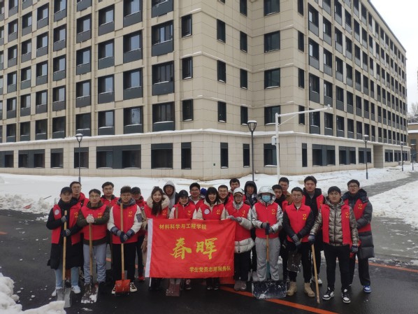 春晖学生党员志愿服务队负责人对参与的志愿者们进行分组、任务分配以及时间安排,同学们迎着大雪、冒着严寒,及时将知行楼、实验室、餐饮中心等师生主要活动场所前的积雪清扫干净,以保障老师和同学们的正常出行,充分体现了“哪儿需要我们,哪就有我们身影”的志愿精神。
