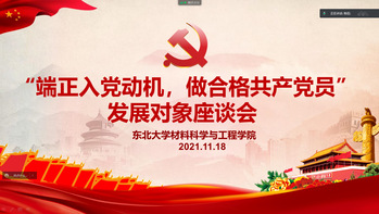 11月17日、18日,学院于线上举办“端正入党动机,做合格共产党员”发展对象座谈会。在会议上,以硕士1906党支部书记皇甫顥为代表的多名优秀党员纷纷发言,分享自己的心得和经验,使同学们受益匪浅。皇甫顥为大家分享了自己入党以来心得,他表示,作为学生党员,要端正自己的入党动机,在日常生活中注重理论知识的学习,提升自己的能力。硕士1909党支部书记张政宇表示,做一名合格党员,首先要做一名合格学生,大家要在丰富科学文化知识,提高专业技能的同时,积极参加志愿服务活动。以硕士2009党支部于艺弘为代表的多名发展对象纷纷发言,他们表示,要树立正确的入党动机,努力学习党的理论和历史,不断提高思想认识水平和思想政治觉悟。同时要正确认识和把握党员标准,自觉接受党组织的培养、教育和考察。
