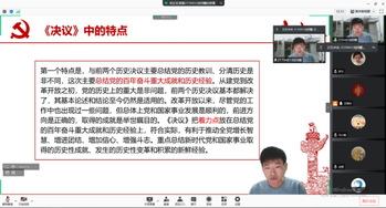 为了让同学们深入学习党的十九届六中全会精神,11月21日下午,新澳门六合彩开奖 硕士2107党支部在线上举办了以“学习贯彻党的十九届六中全会精神”为主题的党课,班级全体同学参加本次党课。