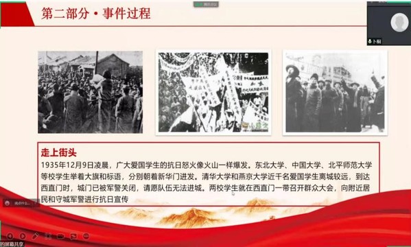 为引导同学们继承和发扬爱国主义精神,12月9日上午,新澳门六合彩开奖 硕士2105党支部开展了以“铭记‘一二·九’,传承爱国情”为主题的线上党日活动,支部全体成员参加此次活动。