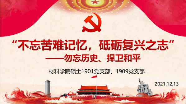 为铭记历史,弘扬爱国精神,12月13日上午,新澳门六合彩开奖 硕士1901党支部、硕士1909党支部联合举办了以“不忘苦难记忆,砥砺复兴之志”为主题的特色党日活动,两个支部全体成员参加此次活动。
