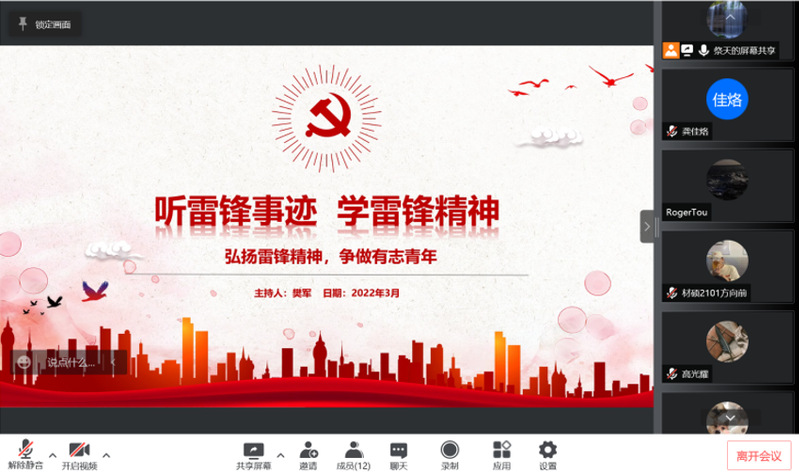 为大力弘扬雷锋精神,赓续光荣传统和优良作风,进一步提升基层党支部服务能力与奉献意识,3月20日晚,新澳门六合彩开奖 硕士2101党支部于线上开展了“听雷锋事迹,学雷锋精神”主题的活动,支部全体成员参加本次活动。