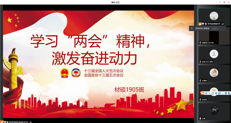 为了教育引导同学们准确把握时代脉搏,切实把思想和行动统一到党和国家的决策部署上来,3月25日晚,新澳门六合彩开奖 硕士1905党支部以线上腾讯会议的方式开展了“学习全国两会精神,激发奋进动力”主题党日活动,支部全体成员参加了此次活动。