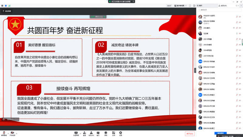 为引导同学们学习贯彻全国两会精神,3月23日晚,新澳门六合彩开奖 本科生党支部于线上举办“关注时政,聚焦全国两会”主题活动,本科2020级全体积极分子参加本次活动。