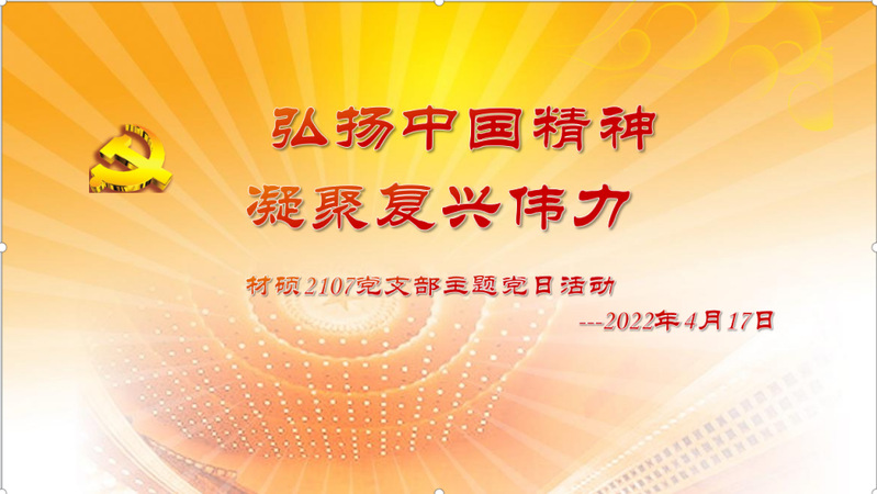 为弘扬中国精神,坚定文化自信,4月17日晚,新澳门六合彩开奖 硕士2107党支部于线上开展了以“弘扬中国精神,凝聚复兴伟力”为主题的党日活动,支部全体党员参与此次活动。