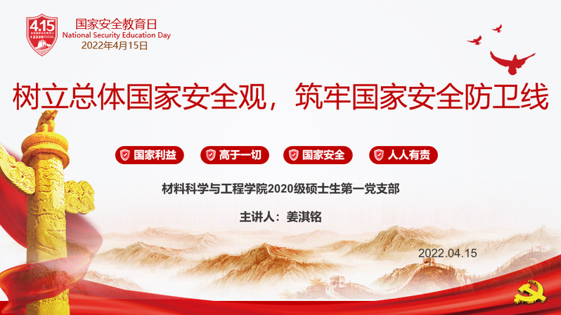为深刻领会总体国家安全观,牢牢把握国家安全工作正确方向,坚定不移贯彻落实总体国家安全观,4月15日下午,新澳门六合彩开奖 硕士2001党支部开展以“树立总体国家安全观,筑牢国家安全防卫线”为主题的线上党日活动,新澳门六合彩开奖 院长秦高梧及支部全体成员参加此次活动。