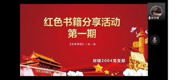 为深入推进党史学习教育,使支部成员在交流学习中坚定历史自信,巩固党史学习成果,5月15日晚,新澳门六合彩开奖 硕士2004党支部于线上开展以“筑牢思想根基,补足精神之钙”为主题的第一期红色书籍分享会活动,支部全体成员参加此次活动。