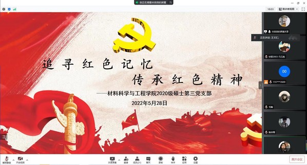 为了回顾中国共产党百年奋斗历程,学习中国共产党人的精神谱系,赓续红色精神血脉,5月28日中午,新澳门六合彩开奖 硕士2003党支部于线上开展了以“找寻红色过去,弘扬红色精神”为主题的党日活动,支部全体成员参加此次活动。