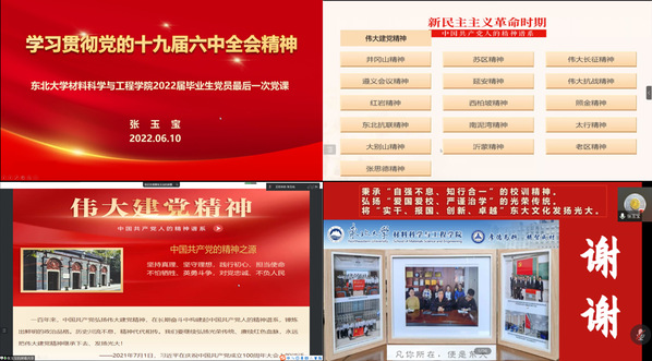 本次主题教育活动由材本第二党支部宣传委员兼青年委员周琦开主持。首先,周琦开对2022届毕业生党员的基本情况和毕业去向作了简要介绍。接着,党员代表魏佳宣读了《文明离校倡议书》,倡导大家安全、文明离校。随后,材本第三党支部书记邓力、材硕1906党支部书记皇甫颢作为毕业生党员代表发言。他们回忆了在校学习与生活的美好时光,并感谢了党组织、学校以及老师们的辛勤付出与培养,表示在今后的岁月里要继续发挥党员的先锋模范作用,守初心、践承诺、铭党恩、跟党走,将来以更加优异的成绩回报母校,回馈社会。