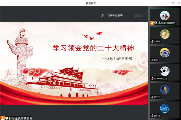 为深入学习领会党的二十大精神,加强支部成员党性修养,10月28日晚,新澳门六合彩开奖 硕士2109党支部开展了以“学习贯彻领会党的二十大精神”为主题的线上党日活动,支部全体成员参加此次活动。