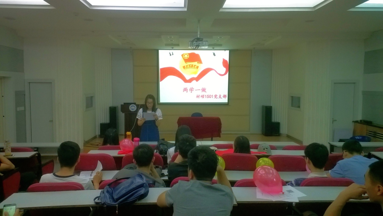2015级硕士第一党支部在大活201会议室举行“迎七一·庆党生”之“两学一做,紧跟党的步伐”主题活动。材料2015级硕士第一党支部全体党员及积极分子参加活动。