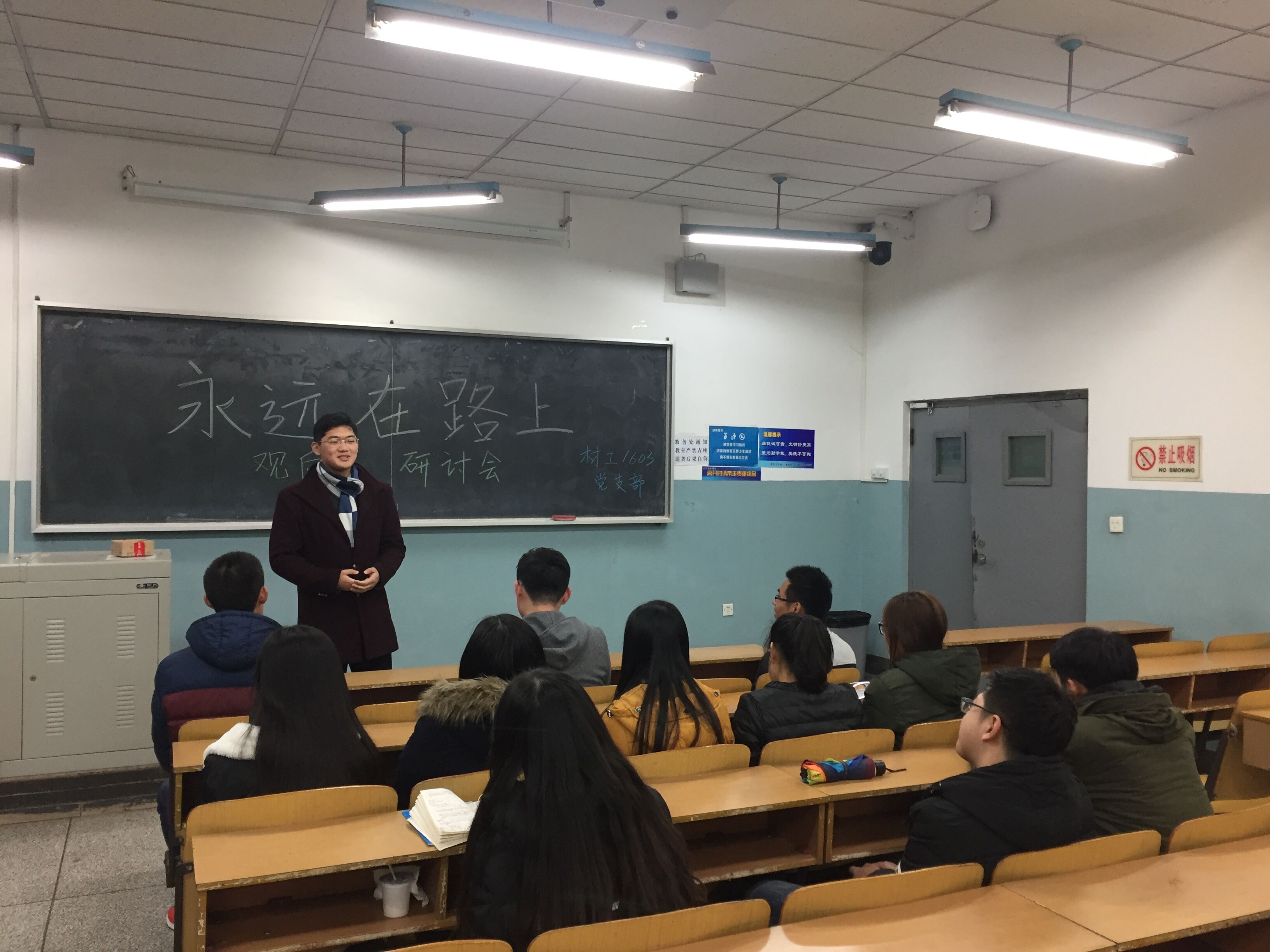 16级硕士材工第三党支部全体九名党员和七名积极分子在何世礼110教室举行了“反腐倡廉我先行”研讨会。