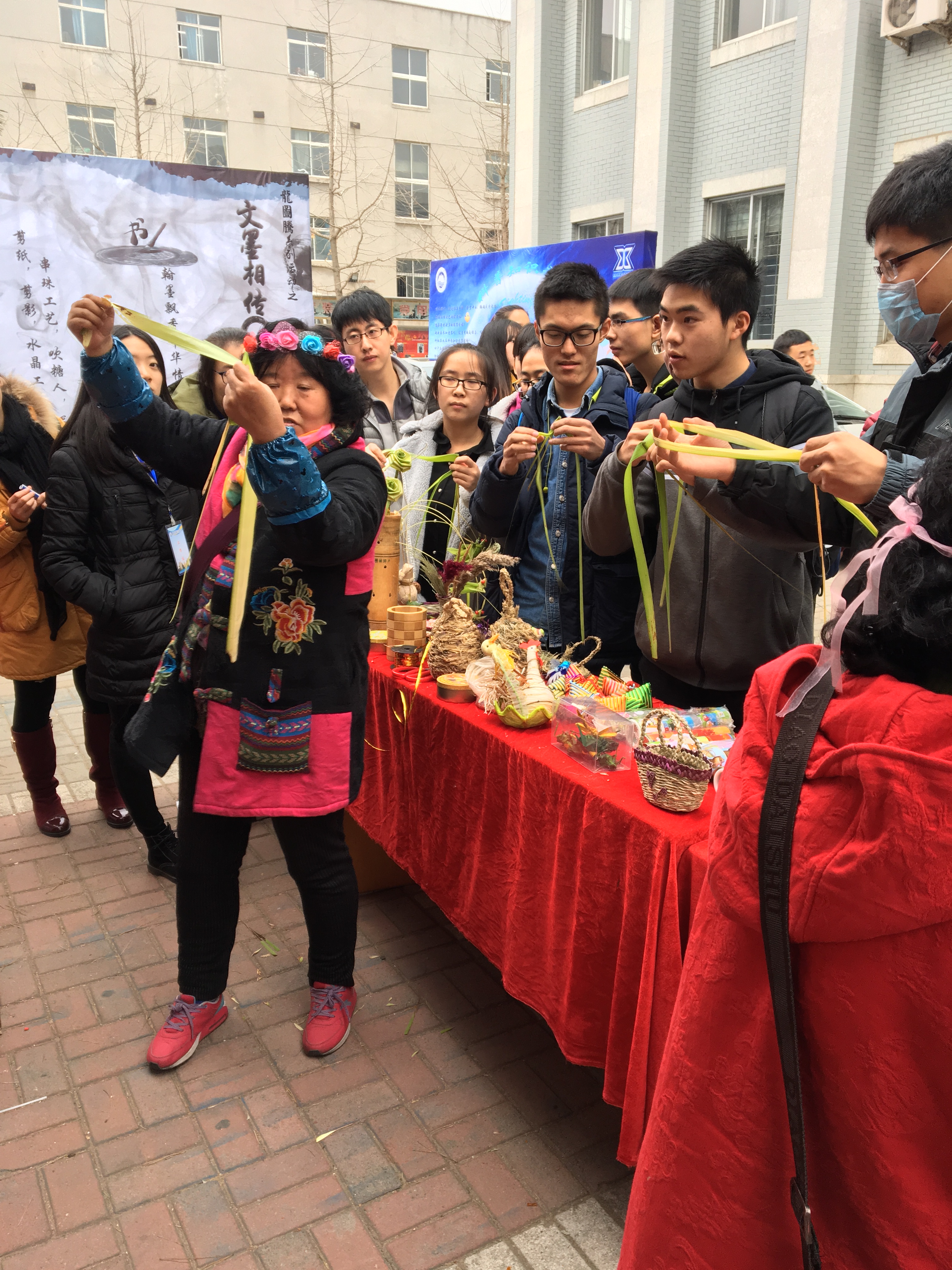 举办的“龙图腾传统文化体验集市”在大学生活动中心门口成功举办。此次文化体验集市请来了沈阳民间传统老手工艺人,带来了诸多非物质文化遗产,如“李氏糖人、精美草编、梅兰书签、京剧脸谱、龙凤字画、铝线编制、玉石文玩、手工软陶、椴木烙画、水晶串珠”等。