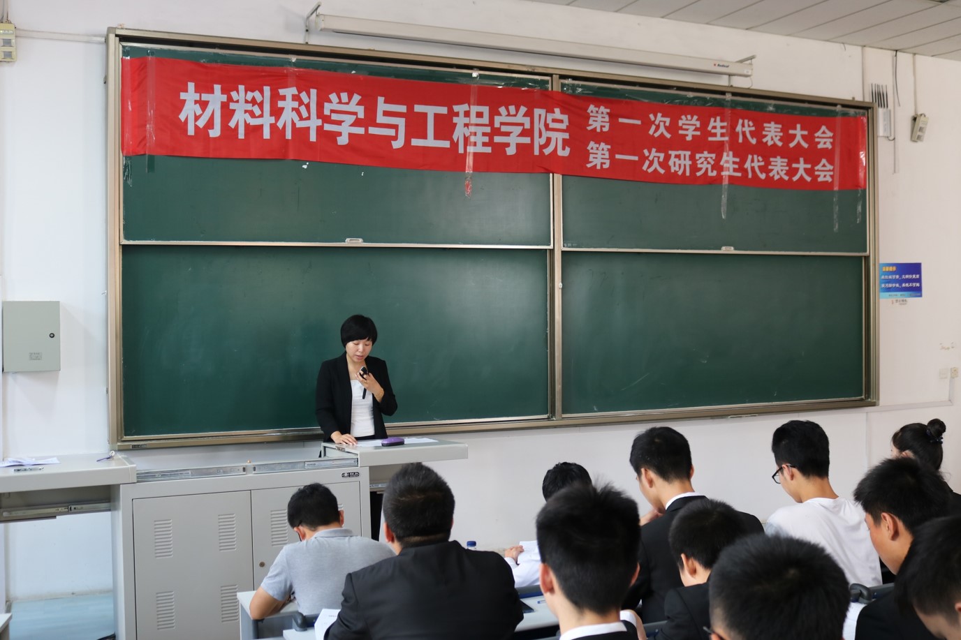 9月17日上午,新澳门六合彩开奖-新澳彩开奖结果 第一次学生代表大会暨第一次研究生代表大会开幕式在机电馆101举行。学院党委副书记兼副院长贺翔、学院团委书记孙巍巍及相关辅导员出席开幕式。